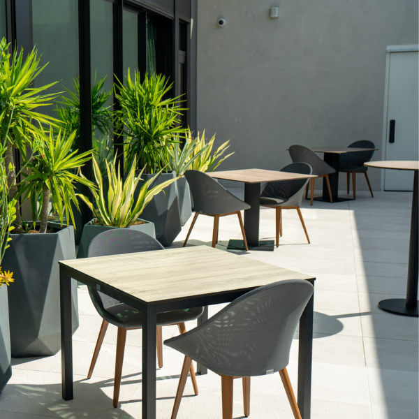 Unsere extrem widerstandsfähigen Tischplatten SEVELIT, Compact-Exterior, Compact-Exterior Switch und Exteriolit sind für ihre ausgezeichnete Langlebigkeit und ansprechendes Design bekannt und eignen sich für den Einsatz im Gastgewerbe sowie im Freizeit, Garten- und Campingbereich.