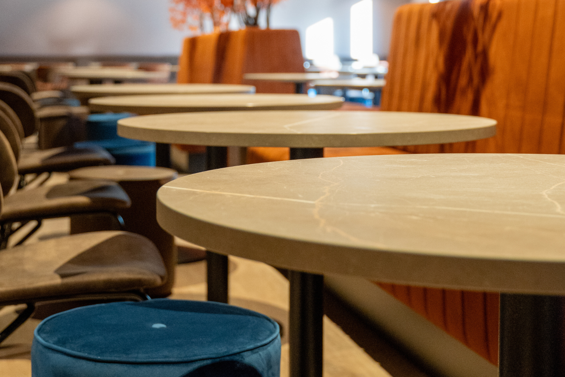 Lamidur Tischplatten wurden entwickelt, um den spezifischen Anforderungen der Hotel- und Gastronomiebranche zu entsprechen, in der elegantes Design und hohe Qualität gefragt sind.